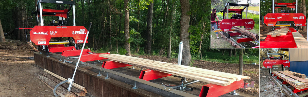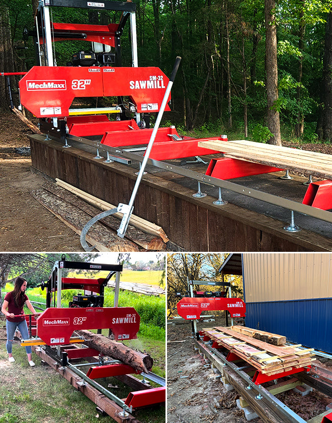 32" Portable Sawmill (5 x Blades Included), 459cc 15HP E-Start Gasoline Engine, 29" Board Width, 20' Track Length (13' Track Length + 6.6' Track Extension Included) , SM-32