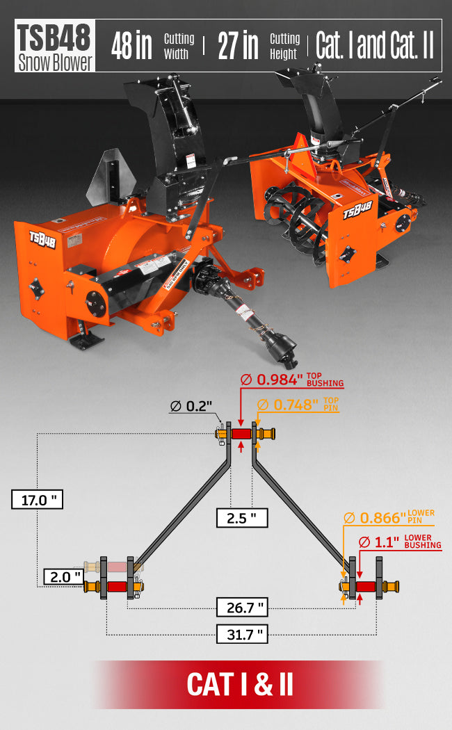 • Universal Compatibility: Fits CAT I & II 3-point hitch. PTO shaft with slip clutch Included.