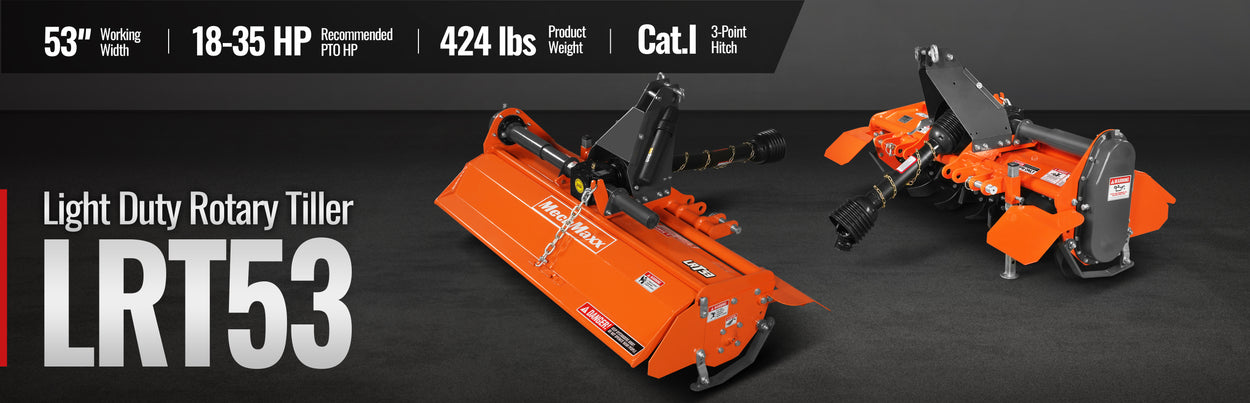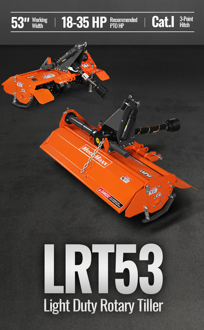 53 in Rotary Tiller, 3 Point Hitch Cat.1, Chain Drive, PTO Shaft Included with Shear Bolt, 18–35 HP, LRT53