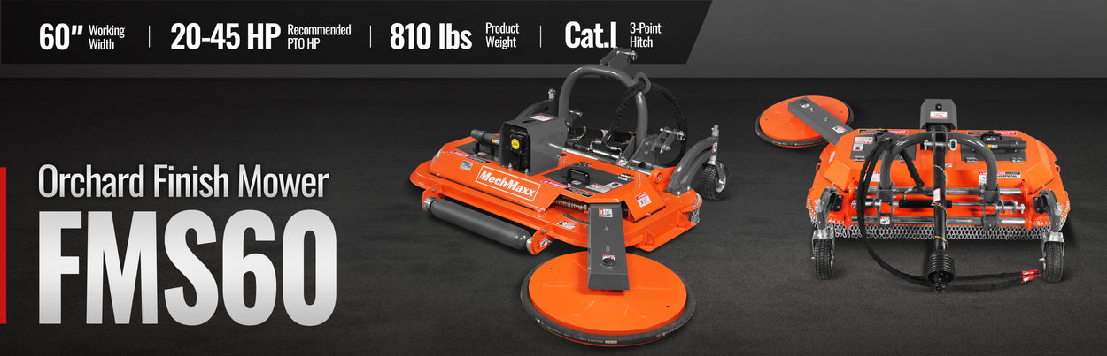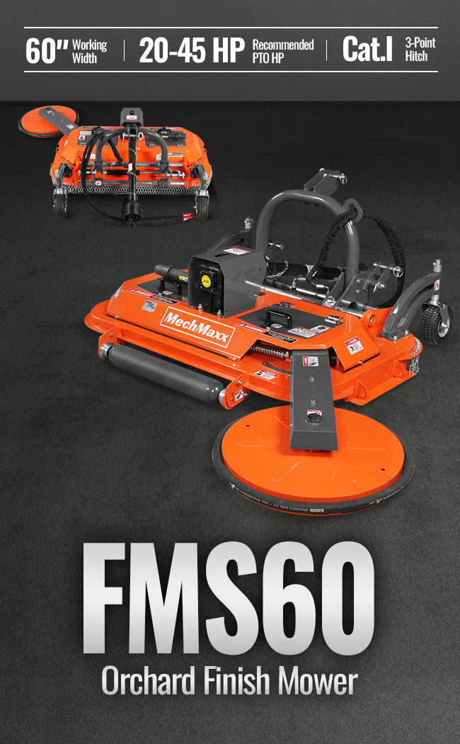 60 in Orchard Finish Mower, 3 Point Hitch Cat.1, Hydraulic Offset, PTO Shaft Included with Shear Bolt, 20–45 HP, FMS60